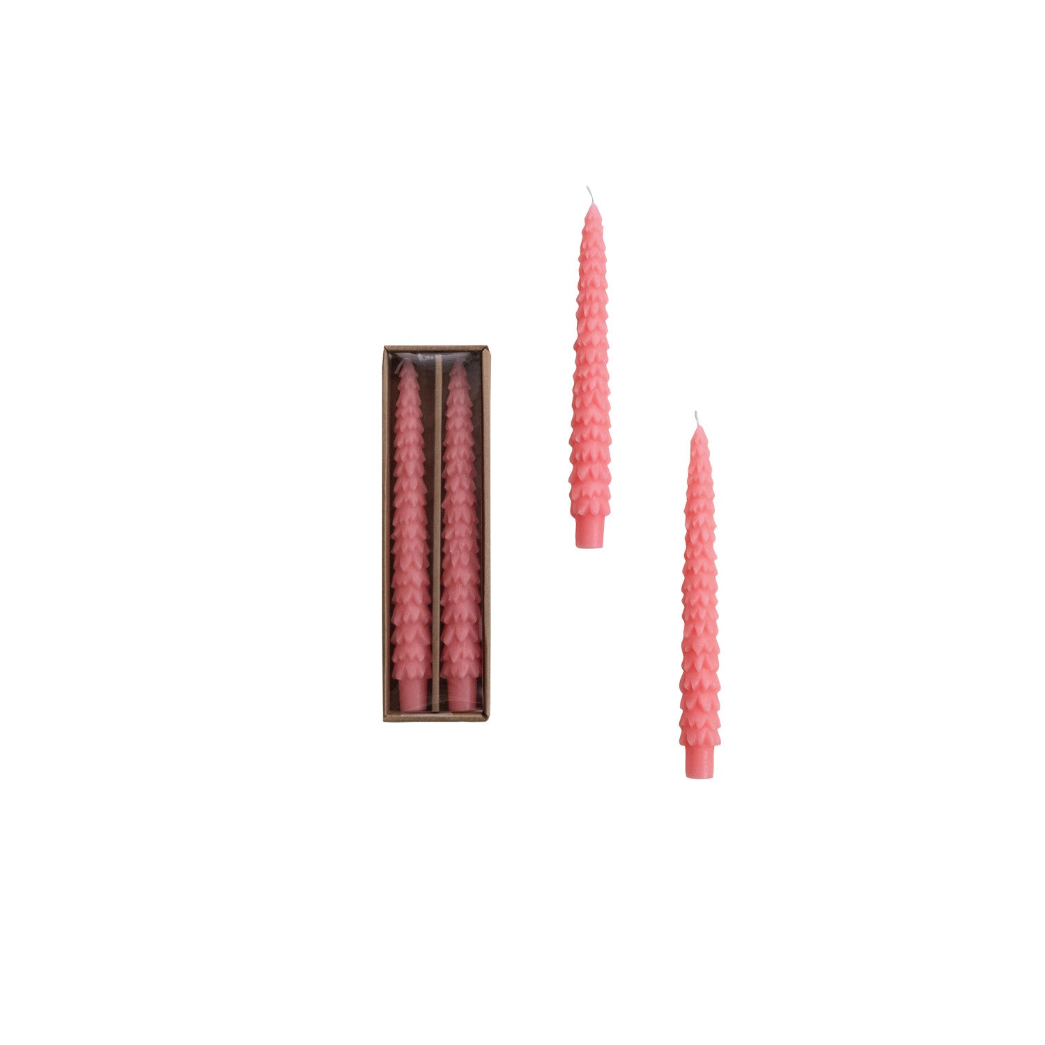 Unscented Tree Shaped Taper Candles in Box, Pink, Set of 2