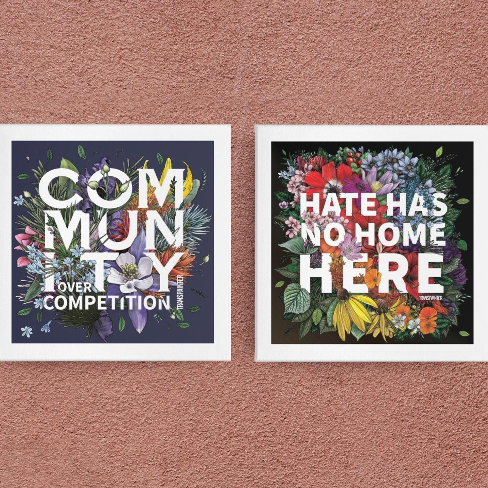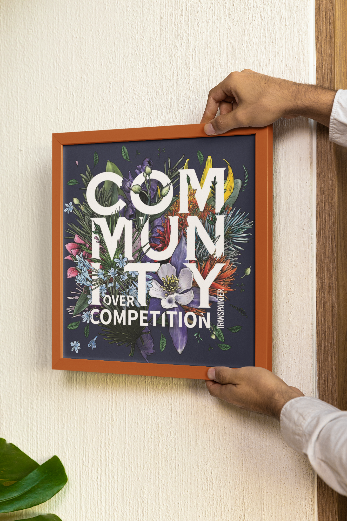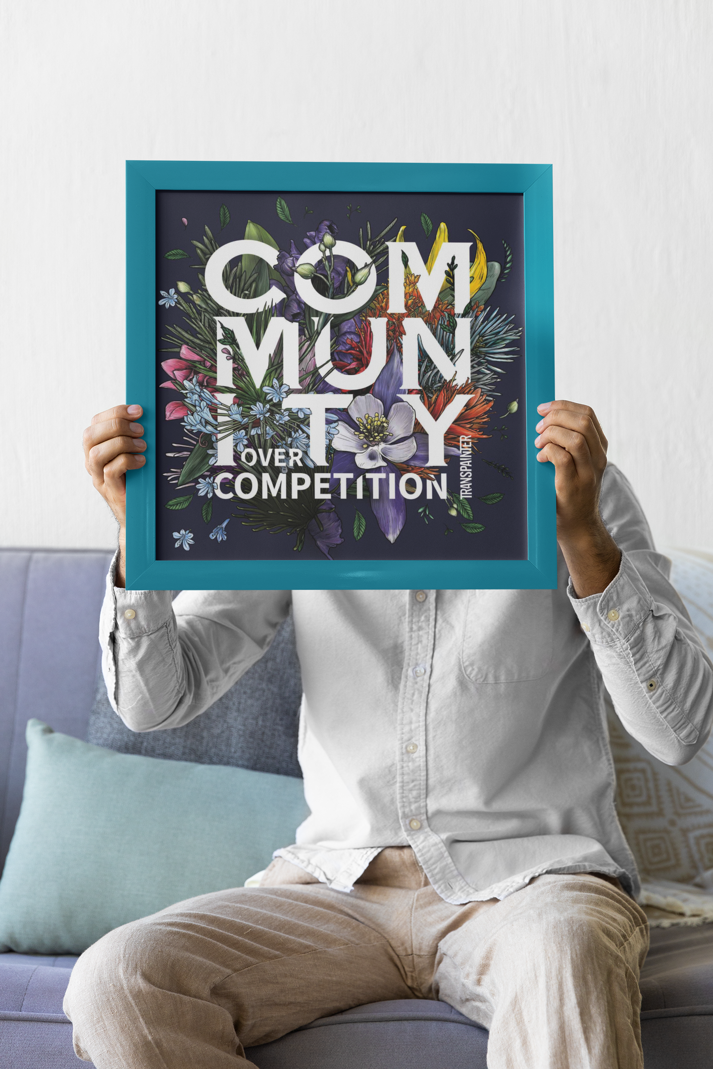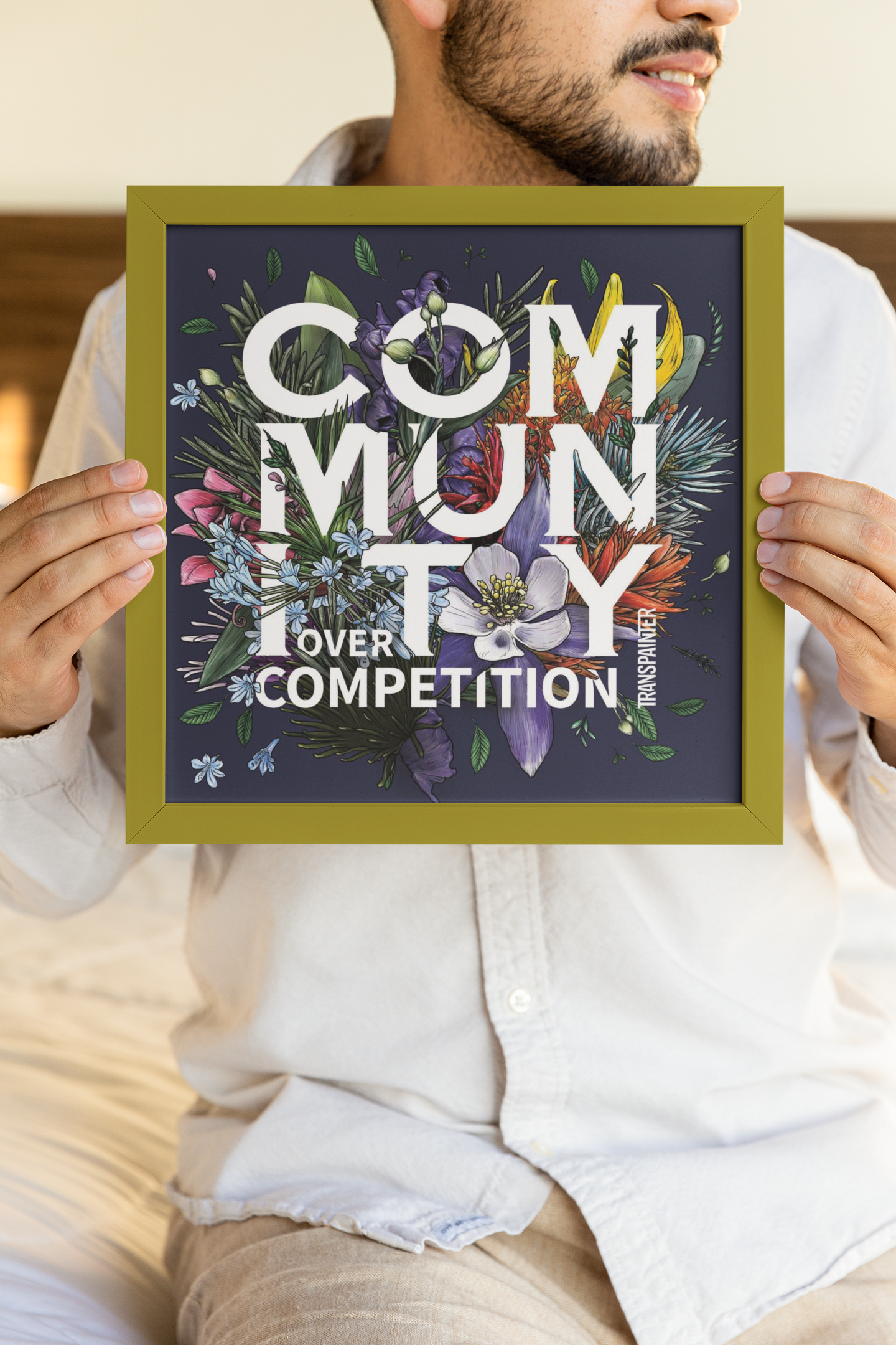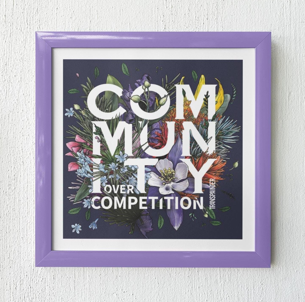 This Community Over Competition botanical illustration and type piece is from artist Rae Senarighi (aka Transpainter) and was inspired by the movements that have grown from Black Lives Matter in the 2020s. DETAILS: .: Materials: 230 gsm paper (archival matte) .: Available in 2 sizes (12x12 or 20x20) .: Assembled in the USA from globally sourced parts .: Posters are unframed and shipped in rolls ** Items in our shop are printed per order for this VERY small family business and therefore we do not offer exchanges or returns at this time. *** Art copyright Rae Senarighi (Transpainter) Thank you for shopping our work and supporting: + transgender-owned business and a transgender/nonbinary artist + women-owned business + a very small family-owned business.