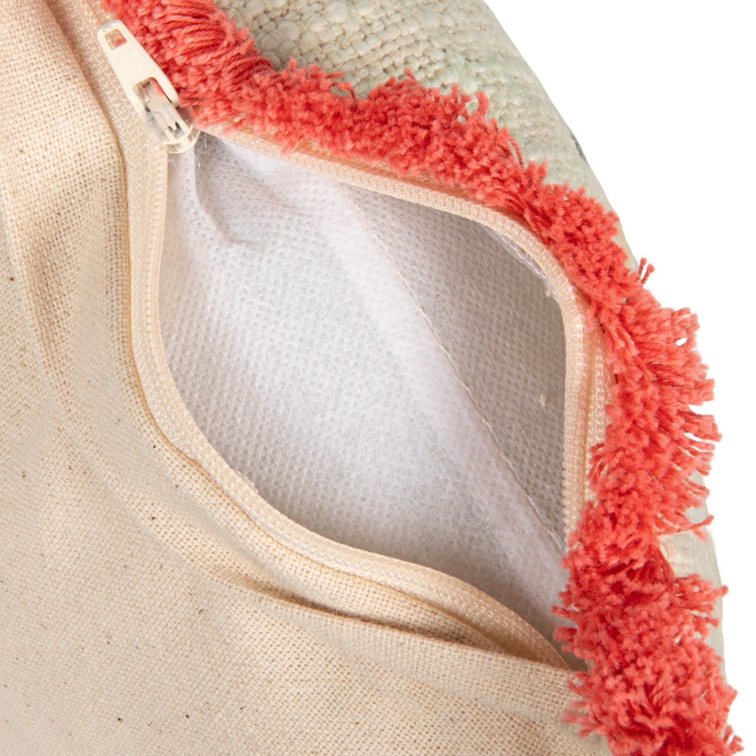 12" Square Cotton Slub Pillow w/ Flowers, Embroidery & Eyelash Fringe
