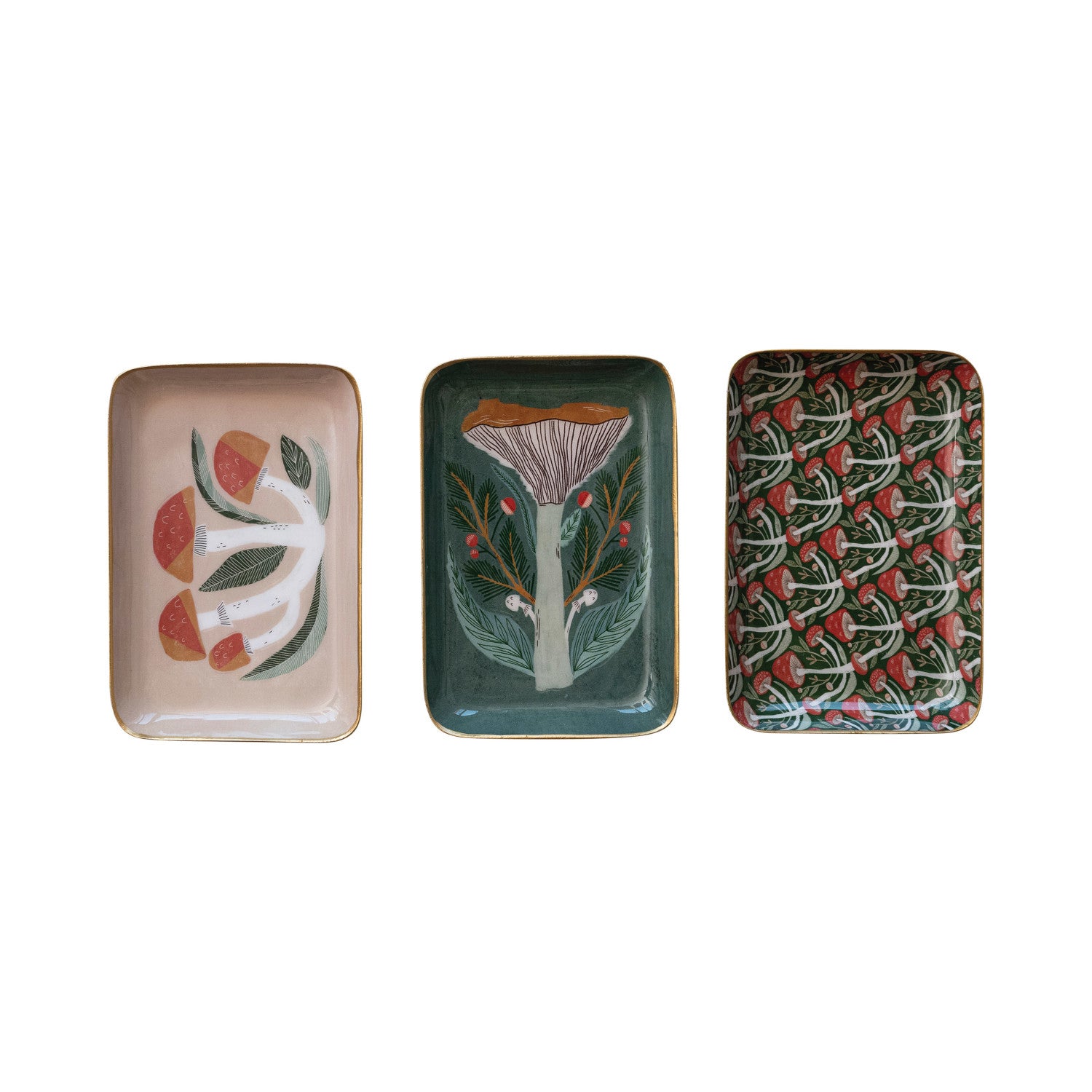 Enameled Stainless Steel Tray w/ Mushrooms & Gold Rim, 3 Styles