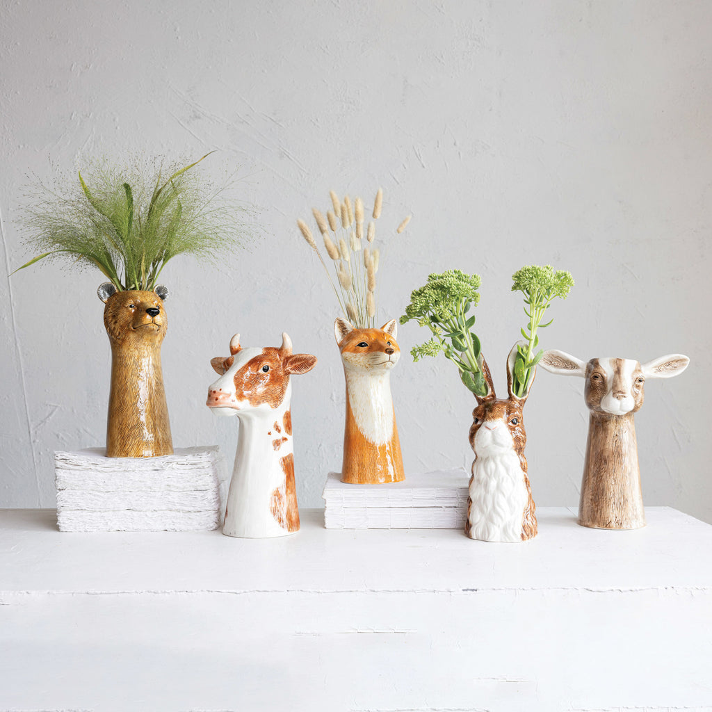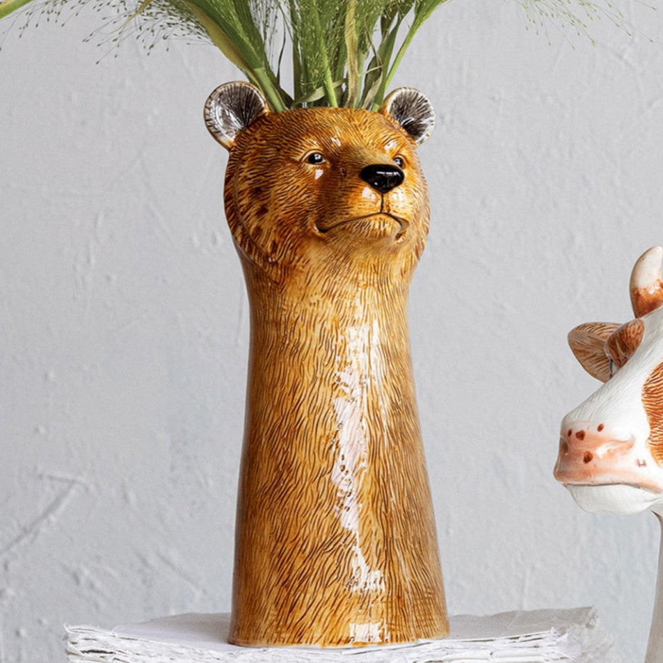 Hand-Painted Stoneware Bear Vase