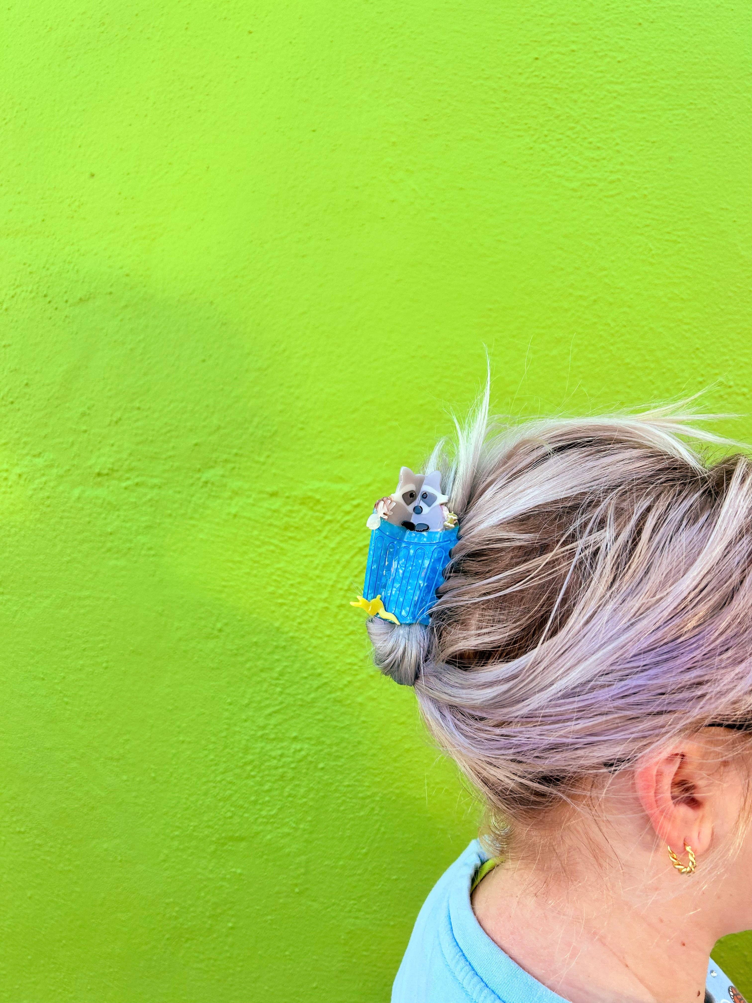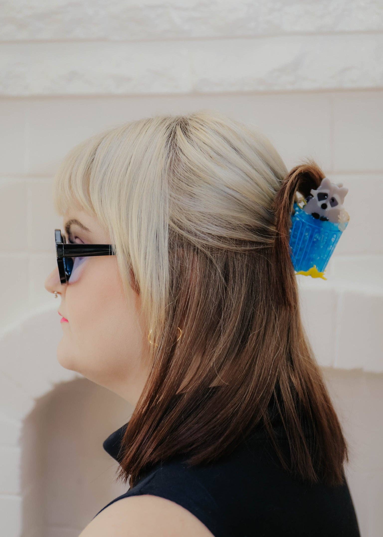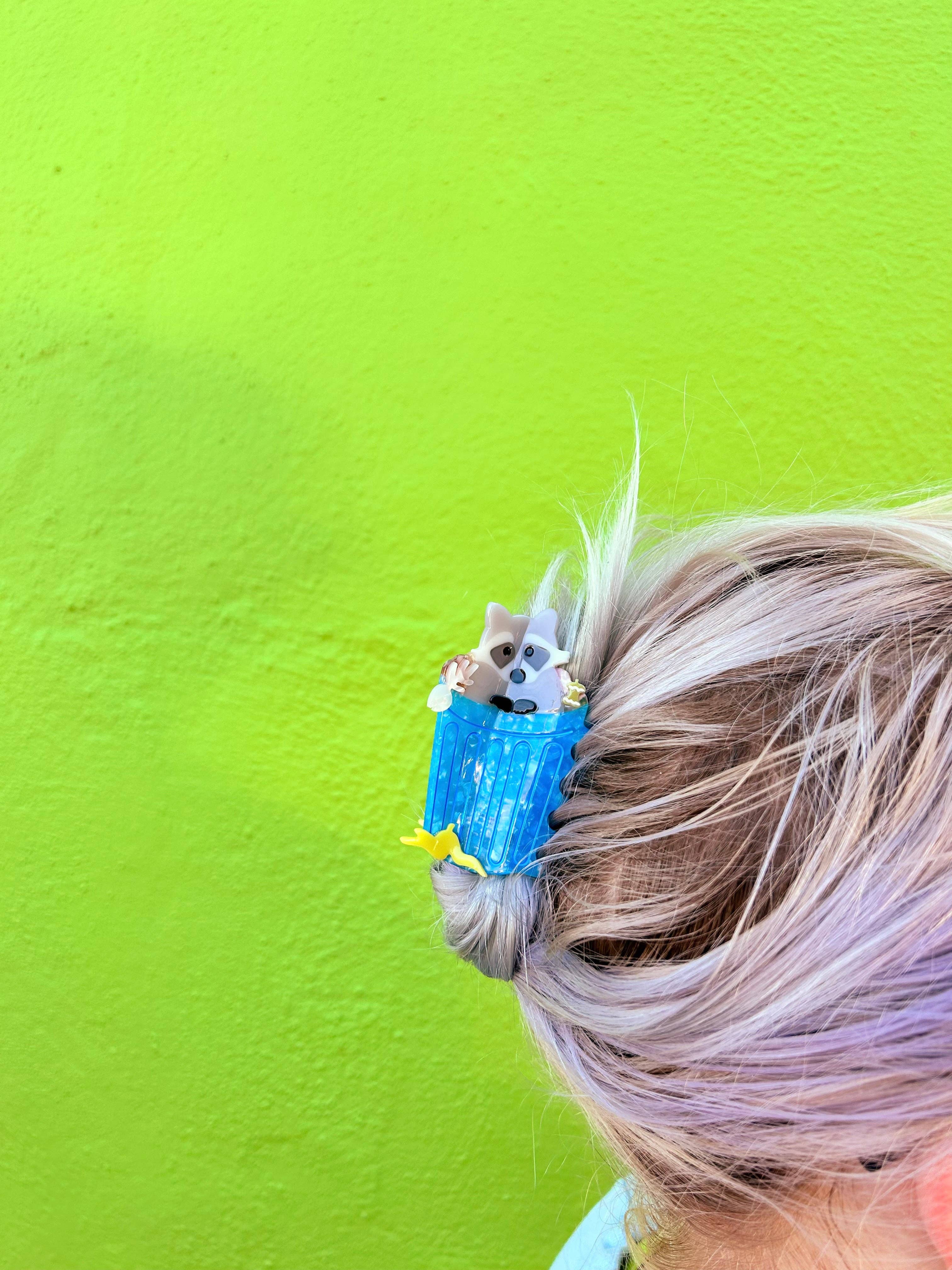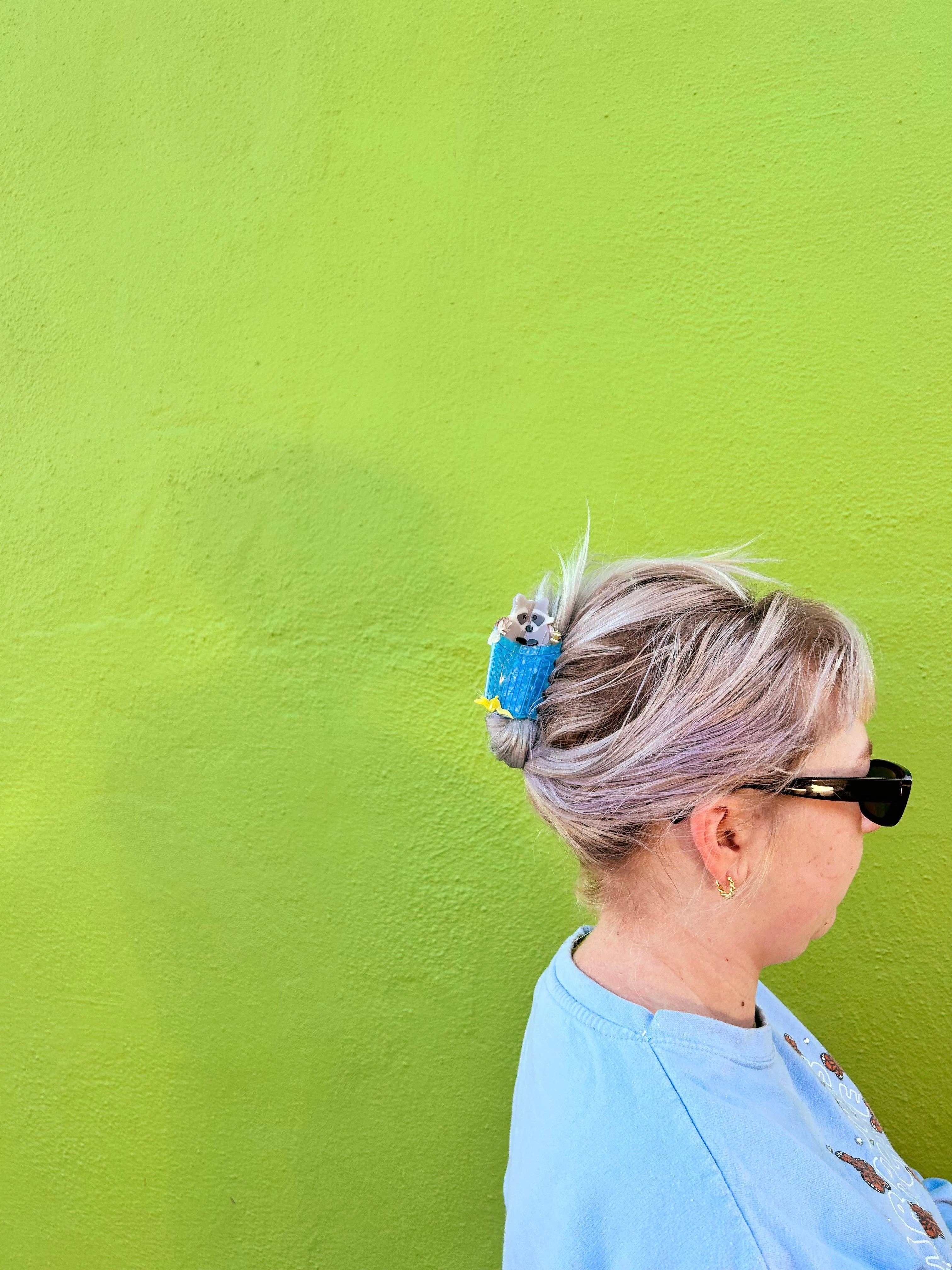 I'M THE TRASH MAN! And every trash man deserves their own trash panda. This raccoon inspired hair claw comes complete with a little guy in his cozy trash can and all his favorite scraps. Made of eco-friendly cellulose acetate (made from plants!) Measures 3.25 inches long. Designed by me in San Francisco, CA. **Imperfect hair claws have little bits of the fish or banana broken. Still fully functional! 10% of all sales goes directly to supporting community organizations.